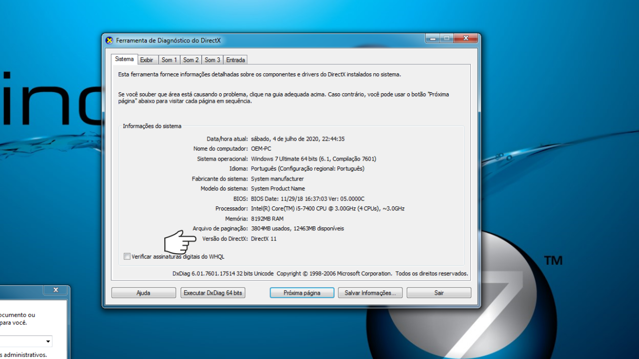 COMO SABER QUAL VERSÃO ESTOU USANDO DO DIRECT X NO MEU COMPUTADOR? EXISTE UMA FORMA SIMPLIFICADA DE PARA DESCOBRIR QUAL É A VERSÃO ATUAL DO DIRECTX INSTALADO EM SEU COMPUTADOR.