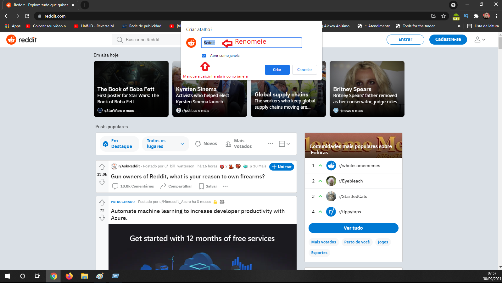 Abaixo mostro o exemplo de atalho padrão estilo aplicativo (sem barra de endereços).