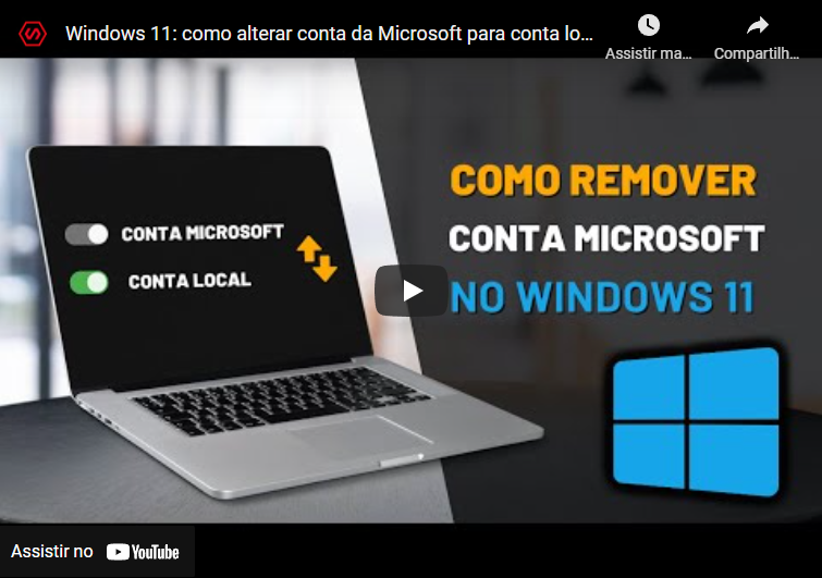 A ideia é mostrar como você mesma faça a alteração e a escolha entre uma conta local offline do Windows ou uma conta Microsoft (Online).